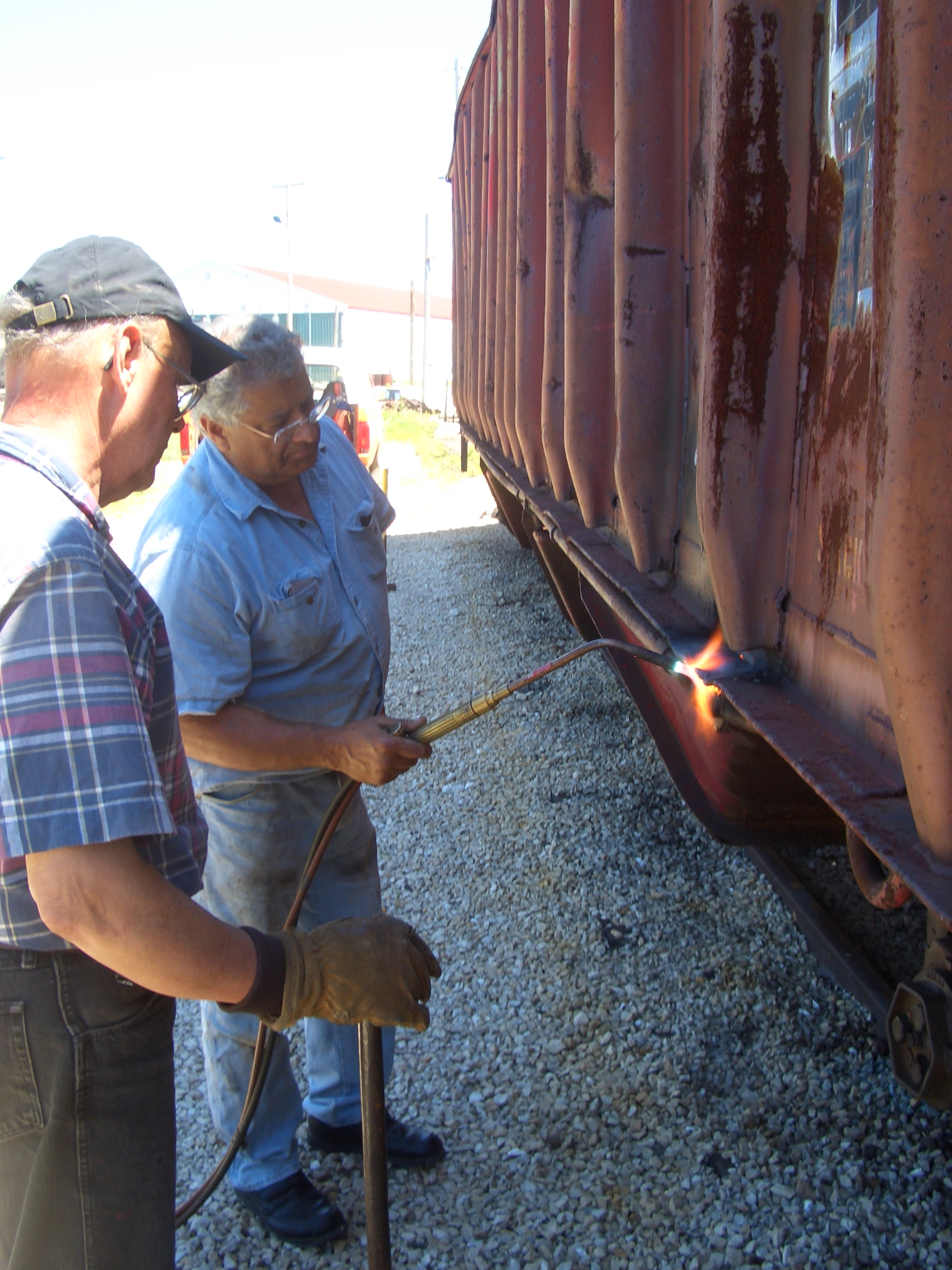 06.30.10 - KIKE ALTERIO HEATS A BENT PORTION OF THE CAR WHILE VICTOR HUMPHREYS WAITS TO USE THE SLEDGE HAMMER TO STRAIGHTEN THE PART. - Kirk L. Warner (kwarner)